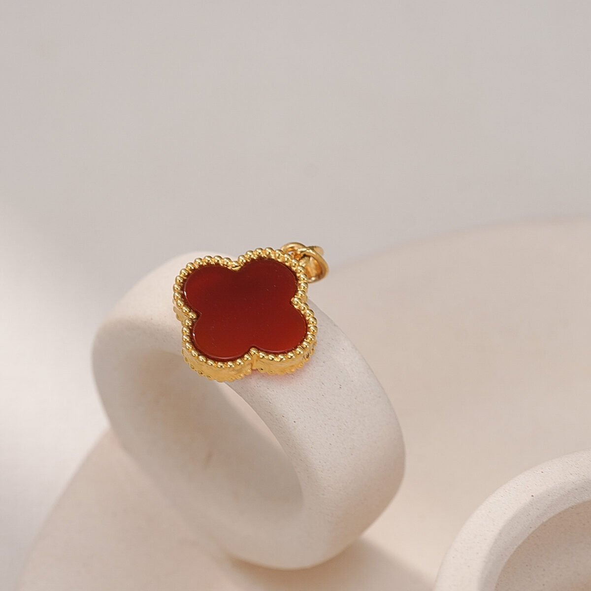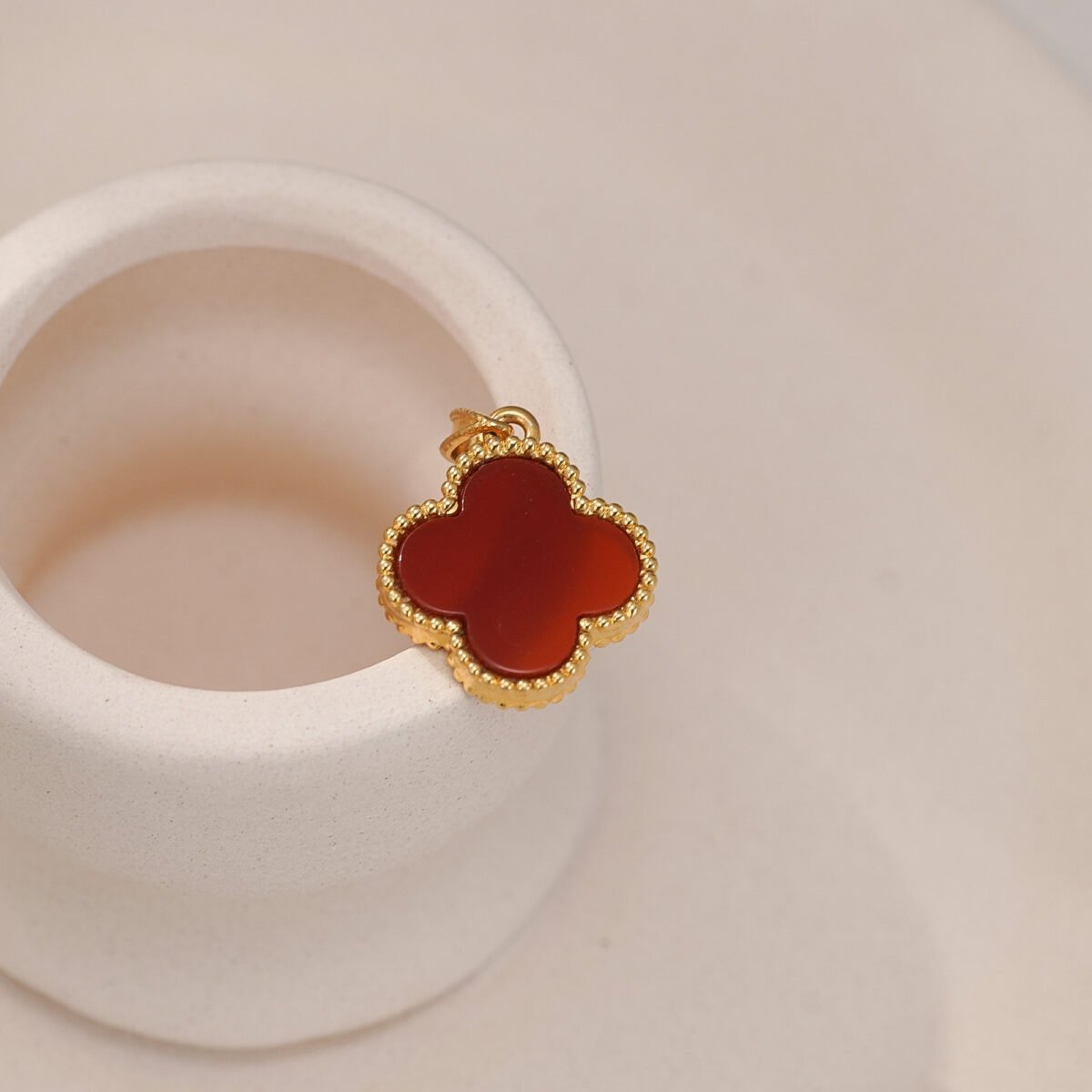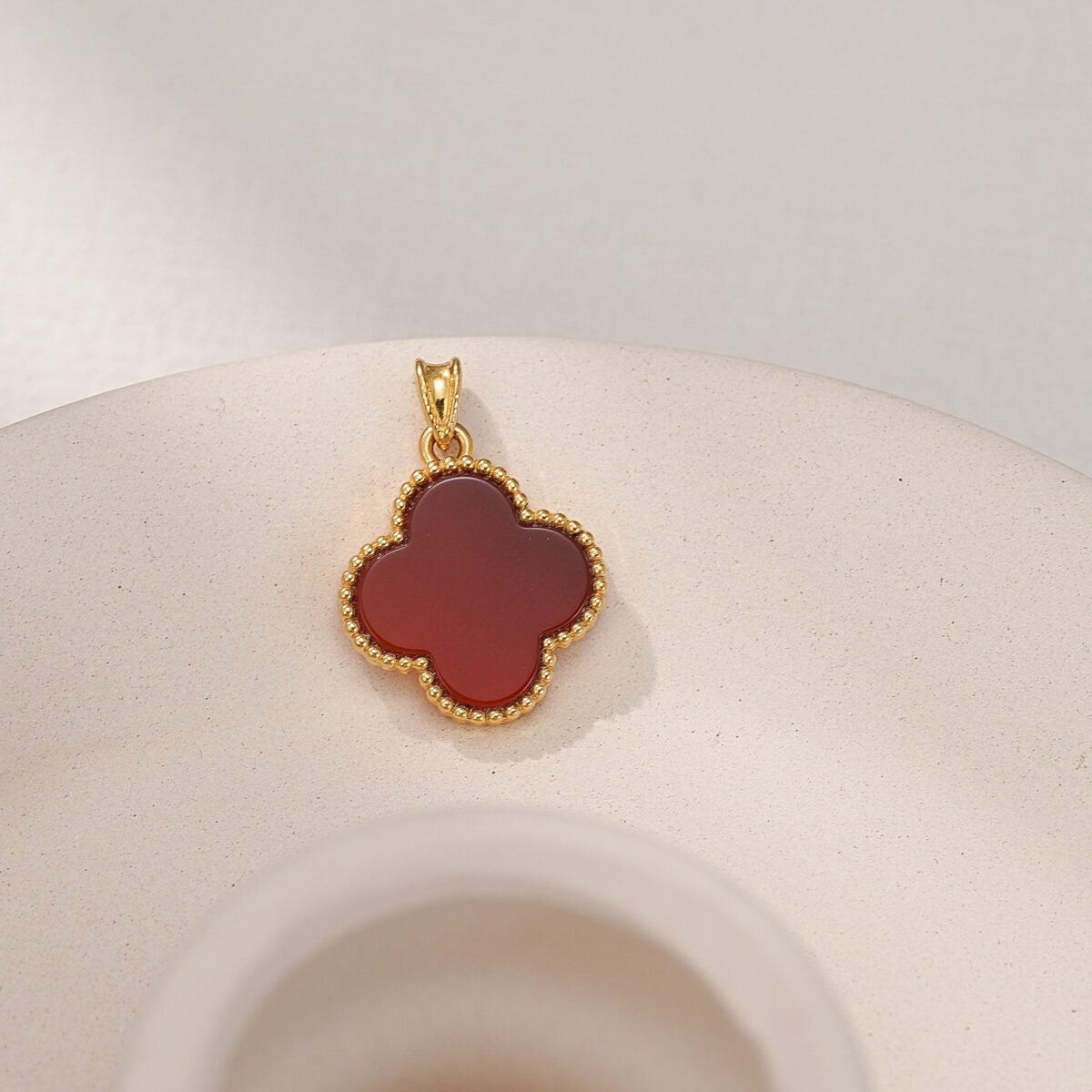 18k gold Lucky Four-Leaf Clover Inlaid with Double-Sided Red Agate