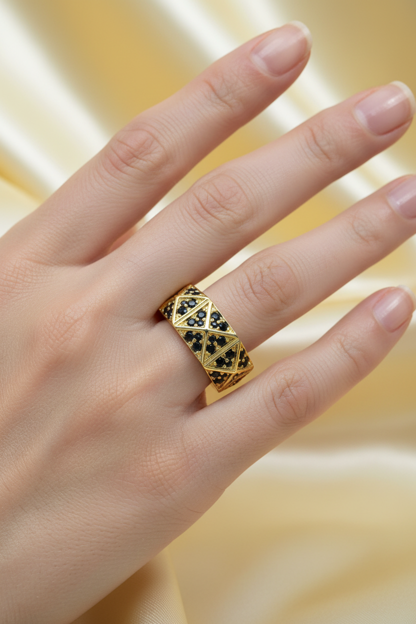 Be the first to review “Crystal-Embellished Diamond Grid Ring (Black)” Cancel reply