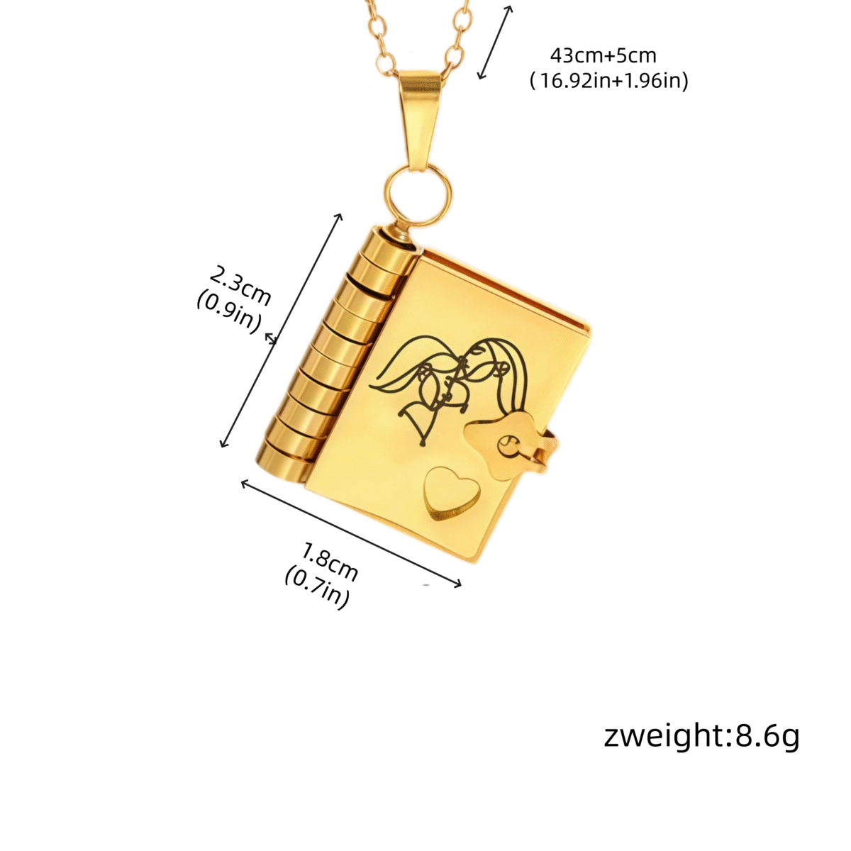 • Pendant Design: Book with LOVE detail