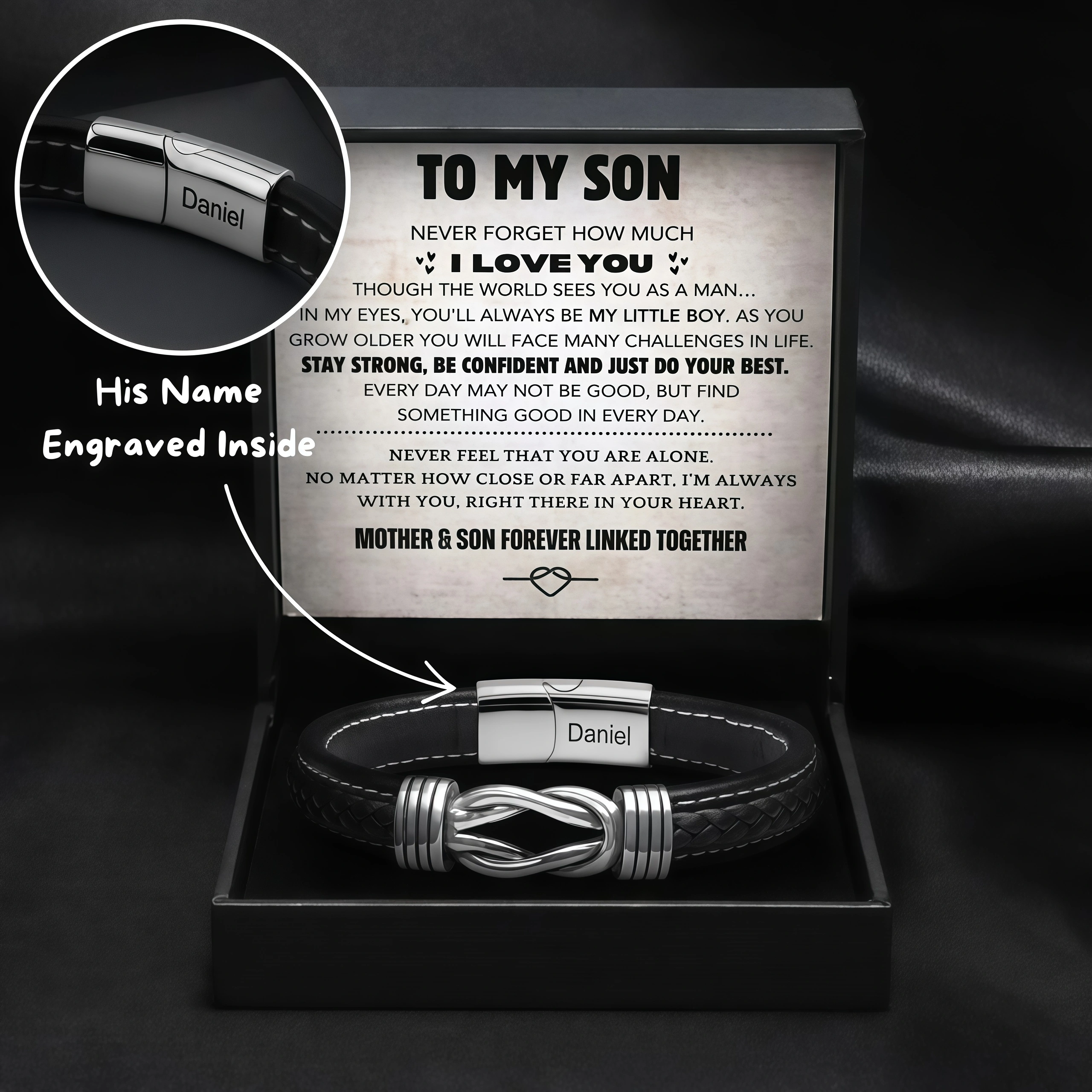 For Son- Inifinity Leayther Bracelet Set(Engraved Name)