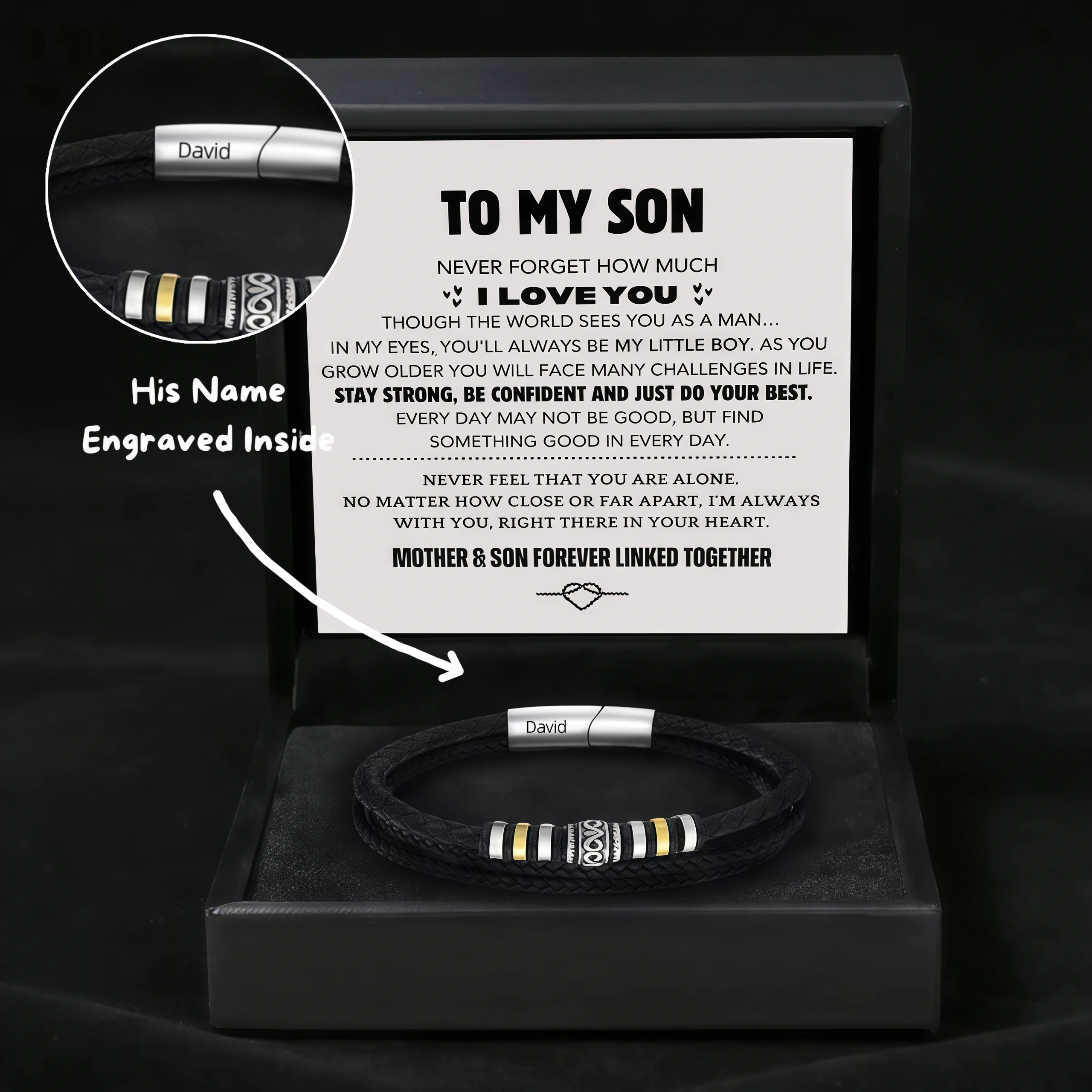 To My Son-Multi-Layer Leather Engraved Bracelet
